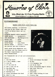 Nach kurzen Überlegungen einigten wir uns auf den Namen „Memories Of Elvis“ und ich begann mit der Arbeit. Zu dieser Zeit gab es keine Computer, also musste alles mit der Schreibmaschine geschrieben werden. Meine Schwiegermutter hatte noch so ein riesen Teil zu stehen, welches ich mir ausborgte. Im Adlersystem (Buchstabe einkreisen und zuschlagen) fing ich an, zuvor malte ich den Umriss für ein Foto auf um dann darum zu schreiben. Logisch das ich eine Seite öfter schreiben musste, da zum einen Tippfehler drin waren oder einfach noch zu viel Platz unten frei war und ich noch Text einfügen musste. Heutzutage ein paar Klicks, damals hieß es neu schreiben. So dauerte es einige Tage bis ich mit den sage und schreibe vier Din-A4 Seiten fertig war.