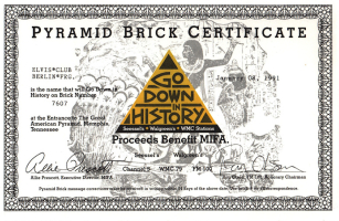 Ab diesem Datum war der Elvis Club Berlin e. V. mit einem individuell beschrifteten Stein auf dem Vorplatz der Pyramide in Memphis vertreten. Diese Steine konnten für 50 US-Dollar pro Stück erworben werden und der Erlös der Aktion kam einem gemeinnützigen Zweck zu Gute.