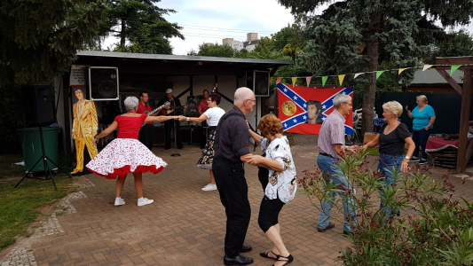 Der Elvis Club Berlin e. V. feierte bei knapp 30° sein 30jähriges Bestehen mit einer Party im Vereinsheim "Bauernstrube". Und mit dabei waren u. a. "Ike & The Capers", welche den Mitgliedern und seinen Gästen ordentlich einheizten: