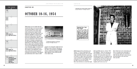 ....a 512-page hardback book....more than 500 photos, approximately 200 of wich are previously unpublished....The text tells the entire story of Elvis' Sun-era career, detailing every recording session and live gig played during this time....10 previously unreleased cuts (outtakes and live recordings), including the worldwide debut of "Little Mama".