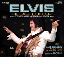 Das Sammler-Label "Follow That Dream" kündigt das 3-CD-Set "Elvis - The Last Concert" mit den Konzerten vom 18.10.1976 aus Sioux Falls, SD bzw. 30.12.1976 Atlanta, GA und Elvis´ letztem Konzert vom 26.06.1977 aus Indianapolis, IN als Publikumsmitschnitt, welches von Anthony Stuchbury remixt bzw. remastert wurde.